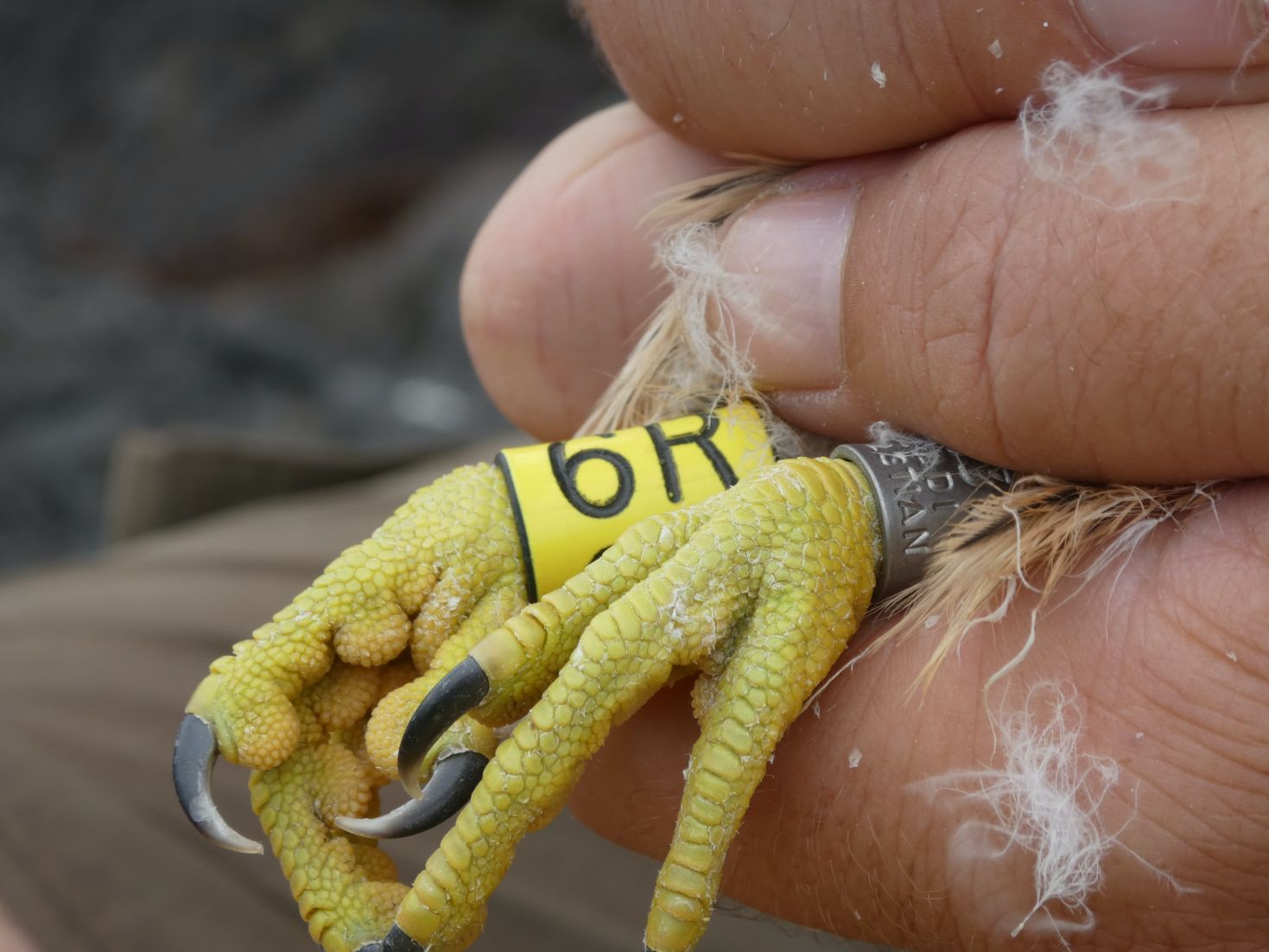 This year, a total of 213 chicks were ringed in the nest when they were approximately 25 days old. As usual, each individual was ringed with a conventional metal ring with the Aranzadi return address and a yellow plastic ring with a two-digit alphanumeric code, which allows identification at distance. These new ringings are added to the total of individuals ringed since the beginning of the project in 2006, which amounts to 2364 falcons. Although, as we said, the identification of individuals ringed in previous years could not be carried out as we would have liked, we managed to do a total of 146 visual recaptures. Among these readings, it has been possible to verify the presence in Alegranza of a high number of falcons born in 2019 (N = 26). These individuals return to the Chinijo archipelago for the first time after they began their first round-trip migration to Madagascar. This information is of special relevance to determine the survival rates of this fraction of the population and their probability of future recruitment, with a bit of luck, as breeders in the Canarian population of the species.