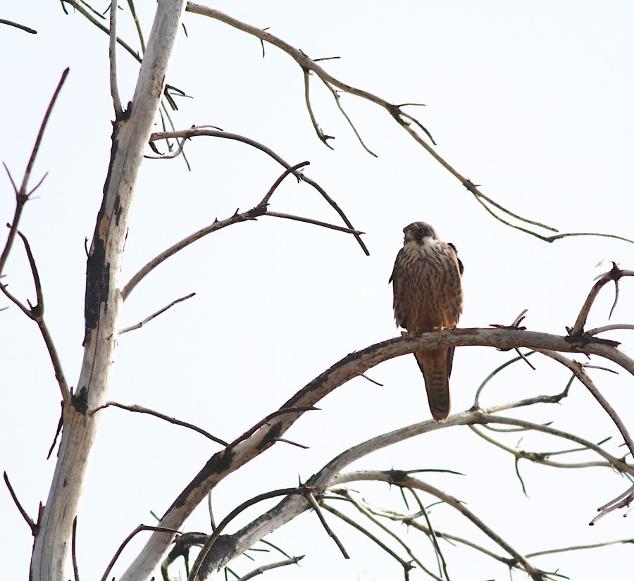 El pasado 23 de julio, Luis Alberto Rodríguez y Jesús García Ubierna observaron 3 nuevos ejemplares de halcón de Eleonor en la misma zona de Gran Canaria, uno de ellos de morfo oscuro y los otros dos de morfo claro, uno de los cuales anillado en pata derecha con anilla plástica de color amarillo y código [CA]. Se trata de un ejemplar anillado como pollo en Alegranza en 2020. Esta es la primera observación de este ejemplar que, al igual que otros individuos de segundo año calendario, regresan a las zonas de cría mucho antes de adquirir la madurez sexual. En la foto se puede apreciar el plumaje característico de un morfo claro de esta clase de edad, y la anilla plástica que permite su identificación a distancia.