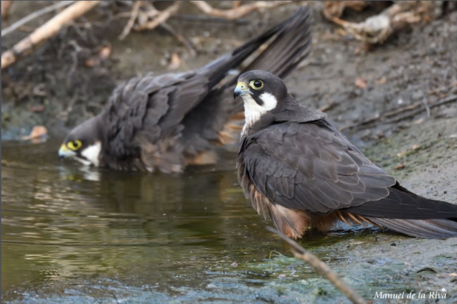 El seguimiento de los halcones de Eleonor implica pasar muchas horas de observación dentro de un hide. Esto también brinda la oportunidad de observar comportamientos hermosos e increíbles, como el momento del baño. Los halcones de Eleonor necesitan mantener su plumaje en perfecto estado, por lo que dedican mucho tiempo a su cuidado. Manuel de la Riva dedicó más de 20 días en agosto de 2017 a observar a estas aves y pudo grabar este fabuloso vídeo