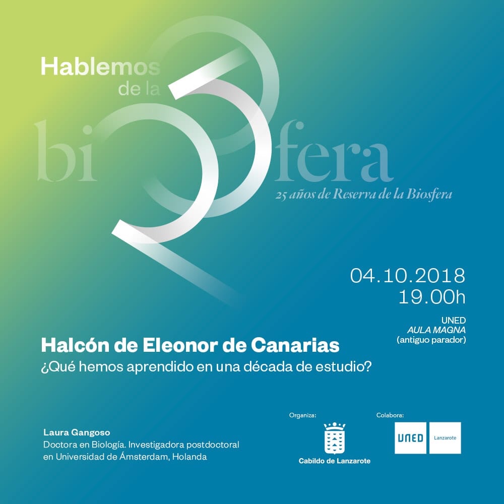 El próximo jueves 04 de octubre el Cabildo Insular de Lanzarote organiza una charla sobre el Halcón de Eleonor impartida por la Dra. Laura Gangoso en el aula magna de la UNED de Lanzarote (antiguo parador), ¡quedan invitados!