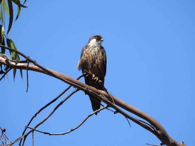 A pale morph Eleonora’s falcon perched on a tree. Photo: Daniel González Rodríguez